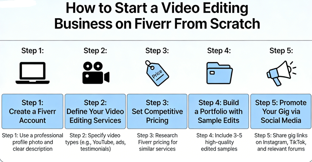 How to Start a Fiverr Video Editing Business From Scratch and Earn $1,000+/Month [2026 Guide]